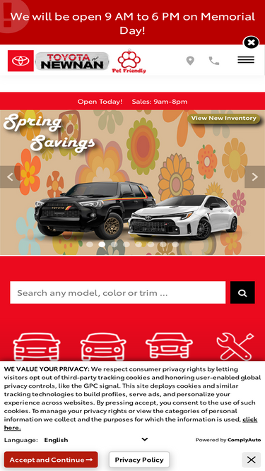 toyota of newnan is your trusted newnan, ga area dealership! we're prepared to help you find your next new toyota or used car as well as keep you on the road with our toyota service department. learn more about what we have to offer today!