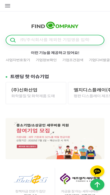 89%파인드컴퍼니는 특허, 주요제품, 기업가치평가액, 업종코드, 설립일자, 주소, 휴폐업, 법인등기의 기업정보를 확인할 수 있습니다.