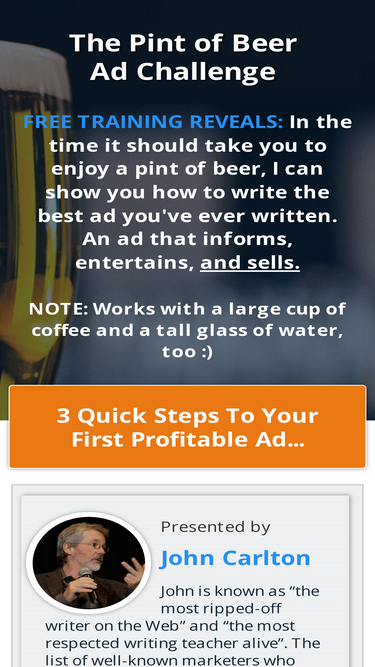 77%Free mini-class. Master persuasive writing and proven selling techniques. Create a sales message that drives results... in less time than it takes to enjoy a pint of beer!