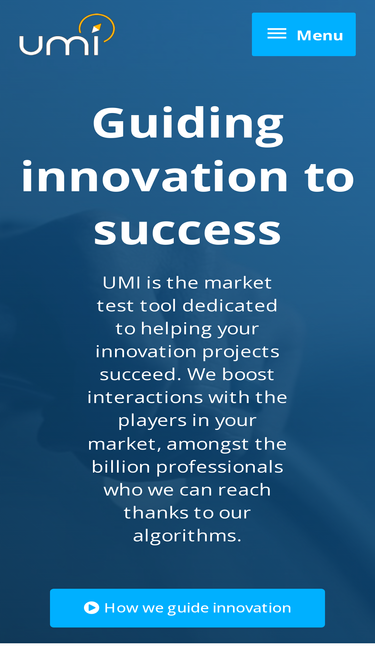 UMI is the market test tool dedicated to helping your innovation projects succeed, by boosting interactions with the players in your market.