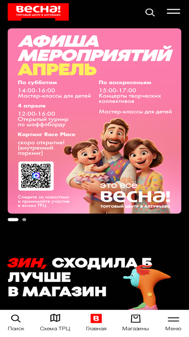 76%весна – это торгово-развлекательный центр на севере москвы. сотни любимых брендов, развлечения для детей, кафе и рестораны. мы знаем, как важно чувствовать себя комфортно, поэтому в весне бесплатная парковка и просторные галереи.