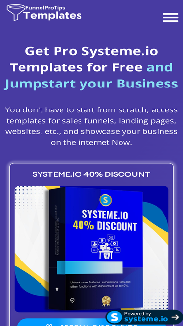 Download now Systeme io Funnel Templates for Free, systeme io landing page customizable and editable website templates with pro design.