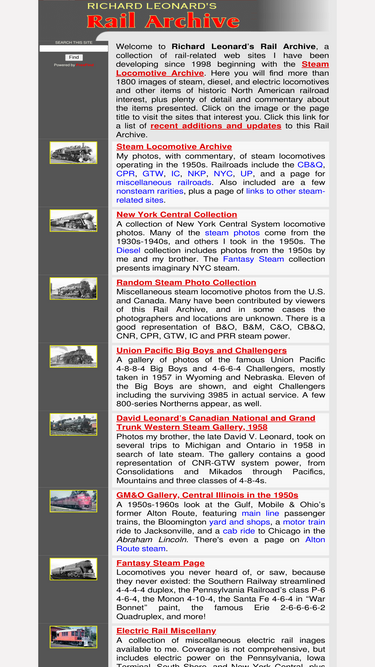 99%images and commentary on vintage steam, diesel and gas turbine locomotives and other items of historic railroad hobby interest.
