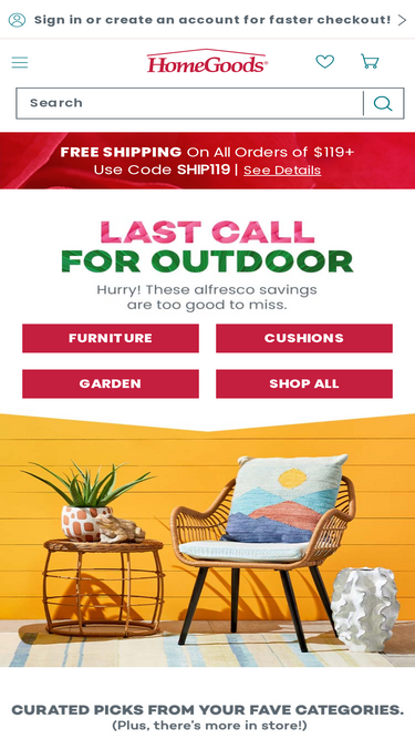 100%your home decor store. go finding at homegoods for an ever-changing selection of amazing finds at incredible savings. find furniture, rugs, décor, and more. see what’s in store.