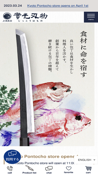 Pontocho is one of Kyoto's most representative red light districts, and JIKKO's Kyoto store is located there. If you are a chef at a Japanese restaurant or restaurant and are looking for an authentic Sakai knife, please come visit us.