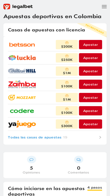 75%Las mejores casas de apuestas legales en 2026: Wplay, Betsson, Rushbet, Bwin. Toda la información que necesitas saber sobre las apuestas deportivas autorizadas en Colombia.