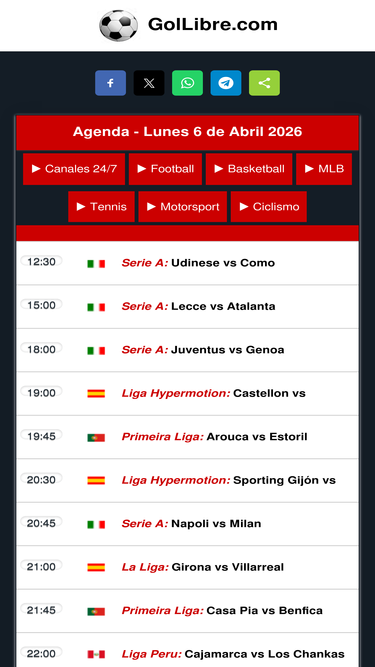 86%GolLibre.com - Live Sports Streaming Free, Deportes en VIVO Transmisión gratuita, programación diaria de canales de TV, Fútbol, boxeo y MMA, UFC, NBA, MLB, NHL, NFL, Formula 1, MotoGP, Tennis, Ciclismo, Rugby, Golf.