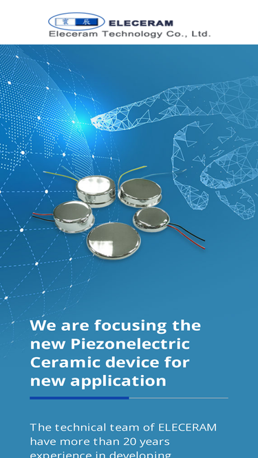 100%he technical team of eleceram have more than 20 years experience in developing piezoelectric ceramic material. based on our intensive technology in piezoelectric ceramics, we are focusing the new piezoelectric ceramic device for new application.寰辰科技自成立二十多年以來,不斷致力於壓電陶瓷元件的開發,從材料元件到製程條件,擁有專業的技術與豐富的經驗。