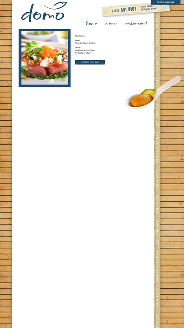 45%domo is a mighty little sushi join in a cool neighborhood. our chef bernardo has been with us since 2008 and has maintained top quality sushi by tokyo standards with little more fun !! he adopts some american twists in his flavors and creations. come taste, and be satisfied!!
