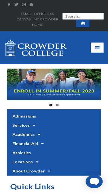 86%All Crowder College locations will be closed for Winter Break through December 24 – January 4.