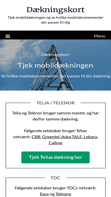 88%Se hvor godt Greentel dækker forskellige steder i Danmark. Se desuden hvilke abonnementer du kan få på Greentels netværk, samt læs mere om Greentel.