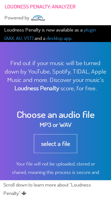 80%Find out if your music will be turned down by YouTube, Spotify, TIDAL, Apple Music and more. Discover your music's Loudness Penalty score, for free.