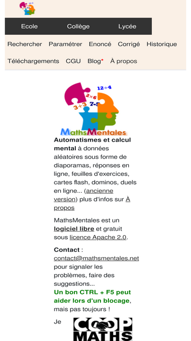 73%mathsmentales est une webapplication qui facilite la mise en place de rituels de calcul mental avec un corrigé final. les questions aléatoires portent sur de nombreux thèmes.