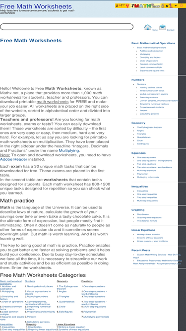 84%ipracticemath provides free online math practice, help and worksheets. try our math problem for 4th,5th,6th,7th,8th,9th grade!