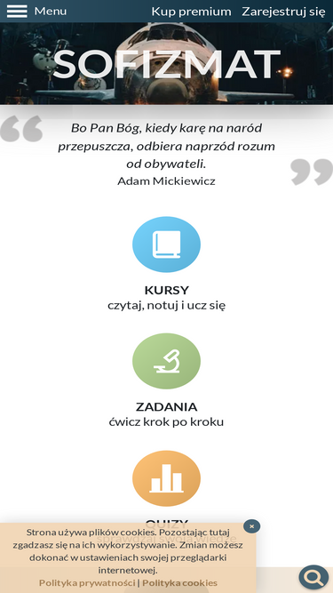 77%SOFIZMAT to rewelacyjne kursy, zadania i quizy. Materiały z matematyki i fizyki w liceum stworzone przez ekspertów. Przygotuj się do matury już dziś!