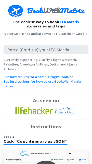 book ita matrix software flights and itineraries by just copy and pasting the final travel itinerary page