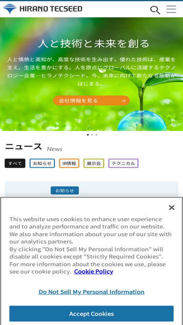 人と情熱と英知が、高度な技術を生み出す。優れた技術は、産業を支え、生活を豊かにする。人を原点にグローバルに活躍するテクノロジー企業―ヒラノテクシード。今、未来に向けて新たなる胎動がはじまる。