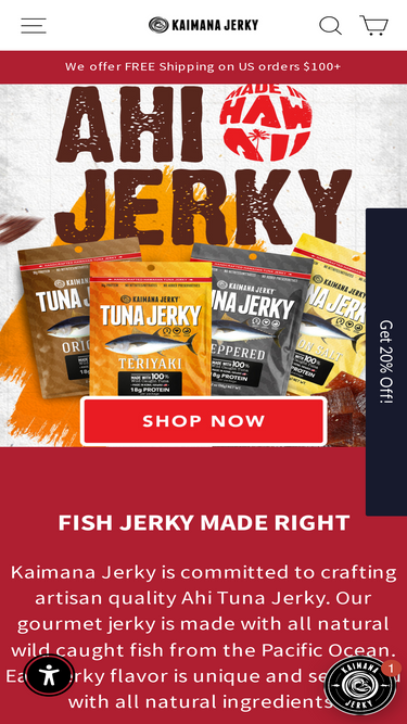 91%At Kaimana Jerky, we bring you the bold flavors of Hawaii with our Island Citrus Wahoo Jerky, crafted from premium wild-caught wahoo, also known as Ono Fish Hawaii. This delicious white fish is prized by Hawaiians and seafood enthusiasts for its mild, slightly sweet flavor and tender texture. CLASSIC GOODNESS - You can't beat the delicious zesty and umami taste of our Island Citrus Wahoo Jerky. Our Wahoo jerky is proudly made in Hawaii with no artificial preservatives or nitrates. FRESH FROM THE OCEAN - Our Hawaiian fish jerky is made from wild-caught wahoo, also called Hawaiian ono, known for its mild, slightly sweet flavor. Packed with minerals like potassium, zinc, and iron, it’s a low-calorie and nutritious choice for fish jerky lovers. PROTEIN-PACKED - Each bag delivers 25 grams of protein, making it one of the best high-protein snacks for active lifestyles. A BETTER WAY TO SNACK - Our wahoo ono jerky is low in sugar, carbohydrates, and sodium, making it perfect for anyone who wants to enjoy a healthy snack without compromising flavor. GOOD FOR YOUR HEART - These flavorful wild wahoo strips are rich in Omega-3 fatty acids. This may help lower blood pressure and help minimize the risk of heart conditions in older adults. ARTISAN QUALITY - When you buy our products, you’re getting premium Hawaiian snacks, handcrafted with over 25 years of expertise. Our Hawaiian wahoo fish jerky is the result of years of passion and flavor development, making it a standout in the world of seafood snacks. Order your Island Citrus Wahoo Fish Jerky today and experience the unmatched taste of Hawaiian ono! Want to try other Wahoo jerky flavors? Check out our bold Spicy Hot Chili Wahoo Jerky or the smoky and savory Smokin' Hickory OG Wahoo Jerky for even more delicious options. Looking to explore more from Kaimana Jerky? Don’t miss our Ahi Tuna Jerky for a savory seafood treat or our Salmon Jerky Variety Pack to enjoy smoky, spicy, and sweet flavors made from wild-caught sal