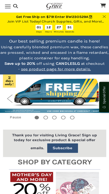 98%shop living grace for christian gifts, communion supplies, banners, apparel, & worship supplies. order direct: 1-800-572-5258. 100% satisfaction guaranteed!