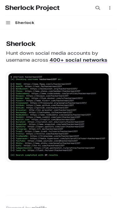83%Sherlock currently supports **400+** sites