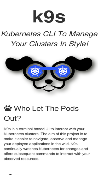100%k9s provides a terminal ui to interact with your kubernetes clusters. the aim of this project is to make it easier to navigate, observe and manage your kuber...