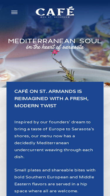 100%Join us on St. Armands Circle for small plates and shareable bites with bold Southern European and Middle Eastern flavors are served in a hip space where all are welcome!