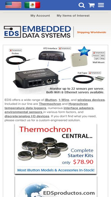 100%Key Features Automatically Wakes Up, Measures Temperature, and Stores Values in 8KB of Data-Log Memory in 8- or 16-Bit Format. Digital Thermometer Measures Temperature with 8-Bit (0.5°C) or 11-Bit (0.0625°C) Resolution. Temperature Accuracy: ±1.5°C from +110°C to +140°C, ±7°C typical from +15°C to +110°C. Water Resistant or Waterproof if Placed Inside DS9107 iButton Capsule (Exceeds Water Resistant 3 ATM Requirements). Sampling Rate from 1s Up to 273hr. Programmable High and Low Trip Points for Temperature Alarms. Programmable Recording Start Delay After Elapsed Time or Upon a Temperature Alarm Trip Point. Quick Access to Alarmed Devices Through 1-Wire Conditional Search Function. 576 Bytes of General-Purpose Memory. Two-Level Password Protection of All Memory and Configuration Registers. Operating Temperature Range: +15°C to +140°C. Communicates to Host with a Single Digital Signal Up to 15.4kbps at Standard Speed or Up to 125kbps in Overdrive Mode Using 1-Wire Protocol. NIST Traceable. Common iButton Features Digital Identification and Information by Momentary Contact. Unique, Factory-Lasered and Tested 64-Bit Registration Number (8-Bit Family Code + 48-Bit Serial Number + 8-Bit CRC Tester) - Assures Absolute Traceability Because no Two Parts are alike. Multidrop Controller for 1-Wire Net. Chip-Based Data Carrier Compactly Stores Information. Data Can be Accessed While Affixed to Object. Button Shape is Self-Aligning with Cup-Shaped Probes. Durable Stainless Steel Case Engraved with Registration Number Withstands Harsh Environments. Easily Affixed with Self-Stick Adhesive Backing, Latched by its Flange, or Locked with a Ring Pressed Onto its Rim. Presence Detector Acknowledges When Reader First Applies Voltage. Meets UL#913 (4th Edit.). Intrinsically Safe Apparatus: Approved Under Entity Concept for Use in Class I, Division 1, Group A, B, C and D Locations (application pending). The DS1922E temperature logger iButton is a rugged, self-sufficient system that me