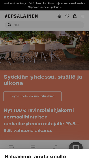 71%vepsäläisen myymälöistä ja verkkokaupasta löydät sohvat, tuolit, matot ja muut design-kalusteet tunnetuilta brändeiltä, kuten artek, kartell ja louis poulsen.