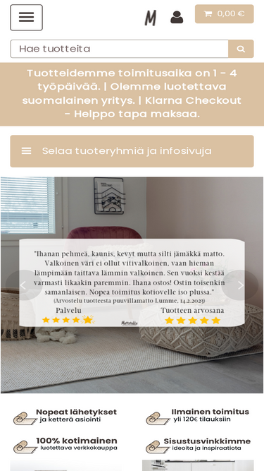 74%Hanki täydellinen mattosi verkosta ILMAISELLA ovelta ovelle -toimituksella ⭐️ Tutustu laajaan valikoimaan erilaisia mattoja ja ainutlaatuisia malleja!