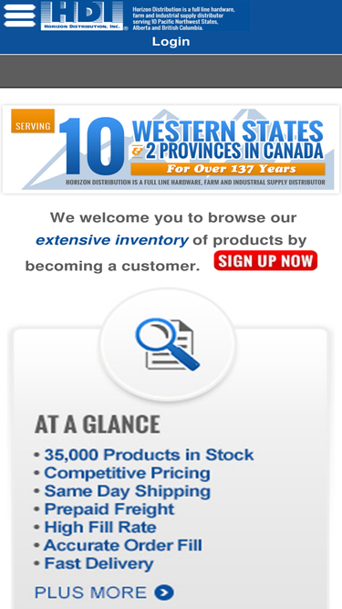 38%horizon distribution is a full line hardware, farm and industrial supply distributor serving 10 pacific northwest states, alberta and british columbia.