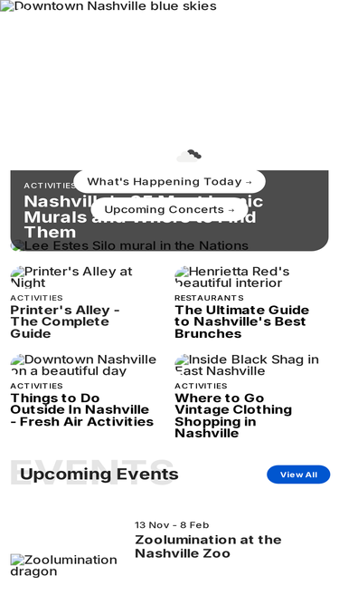66%nashville go is an award-winning digital guide to nashville, tennessee. find out what to do, where to stay, what to eat and what's happening in music city.