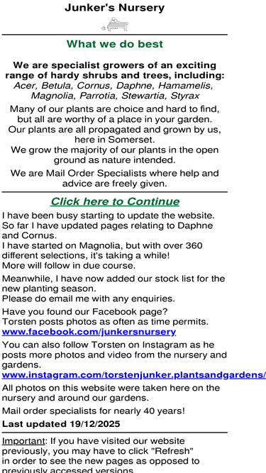 61%pma plants of junker's nursery, mail order, specialist growers of choice plants eg acer, cornus, daphne, magnolia, viburnum