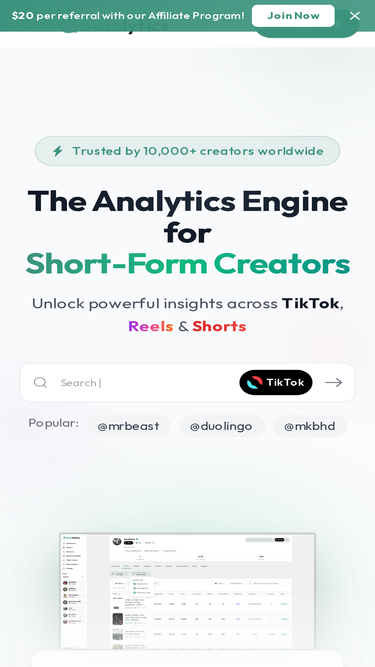 75%Access 340M creators with verified emails, full social graph & 40+ data points. Enrich or discover via dashboard, API & integrations.
