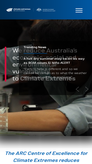 79%the arc (australian research council) centre of excellence for climate extremes leads vital climate science and predictions, trains climate science leaders and prepares australia for future climate extremes.