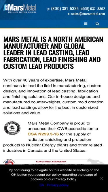 96%mars metal is a north american manufacturer and global leader in lead casting, lead fabrication, lead finishing and custom lead products.