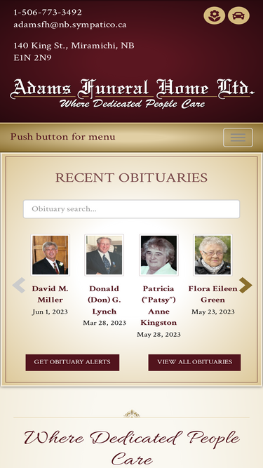 100%Have the Talk of a Lifetime - Adams Funeral Home Ltd. offers a variety of funeral services, from traditional funerals to competitively priced cremations, serving Miramichi, NB and the surrounding communities. We also offer funeral pre-planning and carry a wide selection of caskets, vaults, urns and burial containers.