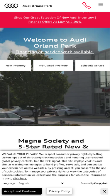 96%Explore Audi Orland Park's extensive inventory of vehicles for sale, featuring a diverse range of cars, SUVs, e-tron and hybrid models. Find your Audi!