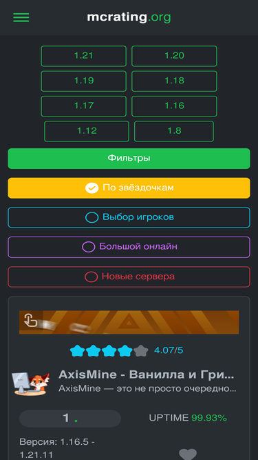 85%Мы собрали для вас только лучшие сервера Майнкрафт с высоким онлайном, стабильной работой и уникальными плагинами. Ищите ли вы классическое выживание, хардкорный анархический проект или сервера с мини-играми.