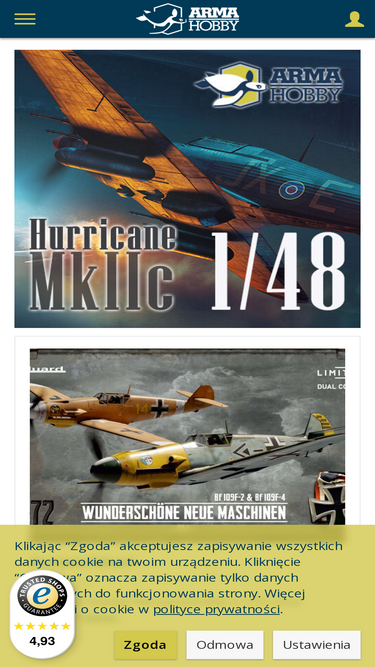 76%P-51D Mustang ™ 1/72 – wczesne wersje (D-5 / D-10) – Arma Hobby 2025 Model przedstawia wczesne wersje słynnego samolotu North American P-51D Mustang, które w latach 1944–1945 walczyły nad Niemcami w barwach 8 Armii Powietrznej USAAF oraz Polskich Sił Powietrznych w RAF. Mustang stał się ikoną alianckiego lotnictwa myśliwskiego, skutecznie osłaniając bombowce i zdobywając przewagę nad Luftwaffe. Zestaw został wyprodukowany z oryginalnych form Arma Hobby (2025) i pozwala wykonać wszystkie wersje używane podczas II wojny światowej: P-51D, P-51K oraz F-6D/K (samoloty rozpoznawcze). Co wyróżnia ten model: Nowoczesne wypraski – zaprojektowane tak, aby ułatwiały montaż i oferowały realistycznie oddane detale odpowiednie dla skali 1/72. Unikalna cecha – jedyny model Mustanga 1/72 ze szpachlowanymi panelami skrzydeł, jak w oryginale. Kalkomanie Techmod – wysokiej jakości, z czytelnie odwzorowanymi oznaczeniami eksploatacyjnymi i godłami jednostek. Maski samoprzylepne – do kabiny i kół, ułatwiające precyzyjne malowanie. Przezroczysta podstawka transportowa – pomocna przy prawidłowym montażu podwozia. Zawartość pudełka: części plastikowe (wypraski) do budowy jednej miniatury, bogato opracowana kalkomania Techmod, zestaw masek do kabiny i kół, podstawka montażowa z przezroczystego tworzywa, instrukcja montażu z wariantami malowania. Kod do pobrania bezpłatnego pliku z akcesoriami 3D Schematy malowania i oznakowania: P-51 D-10-NA Mustang, pilot: Lt. Clarence „Bud” Anderson, 375. Grupa Myśliwska, 363. Dywizjon Myśliwski, 8. Armia Powietrzna, RAF Leiston, Anglia, styczeń 1945 r. P-51 D-5-NA Mustang, pilot: Cpt. Jack Ilfrey, 79. Dywizjon Myśliwski, 20. Grupa Myśliwska, 8. Armia Powietrzna, RAF Kings Cliffe, England 1944 r. Mustang IV (P-51 D-5 NT), pilot: F/Lt Janusz Franckiewicz, 303 Dywizjon Myśliwski PSP, RAF Andrews Field, Anglia, kwiecień 1945 r. Więcej o Mustangu: Artykuły, zdjęcia w wysokiej rozdzielczości można znaleźć pod linkiem do naszego bloga. Wypro
