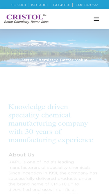 90%Learn about CRISTOL by KAPL, a trusted name in innovative chemical solutions for global industries. Explore our legacy, expertise, and commitment to quality.