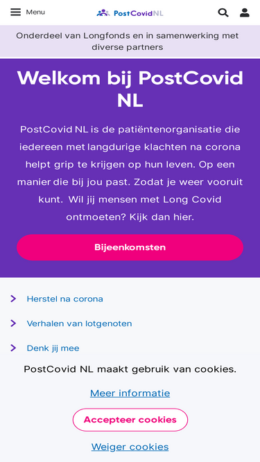 63%Langdurig klachten na COVID-19 besmetting? Bent u langer dan 2 maanden geleden besmet geweest met het SARS-COV-2 virus en hebt u sindsdien duidelijk voelbare klachten? Dan kan het zijn dat u Long Covid hebt. Behandeling is mogelijk.Bij de Long Covid poli van het CVS/ME Medisch Centrum kunnen wij u helpen. Direct aanmelden voor intake Bel