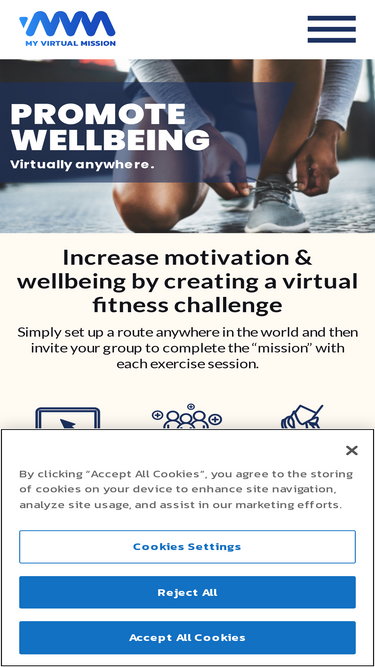80%Set up your own virtual fitness challenges on the My Virtual Mission website or app. Make your running, cycling, walking or other fitness and exercise distances count towards completing your own fitness challenges! Join one of our group fitness challenges or set up a corporate wellness fitness challenge.
