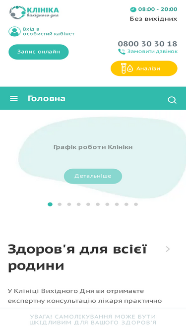 94%ᐉ Записуйтесь онлайн в Клініку Вихідного Дня в Києві. ❤️ Топ ціни. ✅ 150 кращих лікарів. ✅ 45 медичних напрямків. ✅ Аналізи і вакцини. ✅ Огляд і консультації. ✅ Відгуки пацієнтів.
