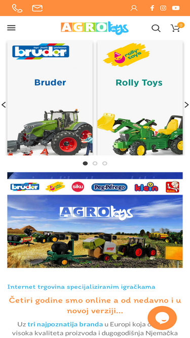 Internet trgovina specijaliziranih agro igračaka. U našoj ponudi možete pronaći traktore, kamione, bagere, traktore na pedale i slične igračke.