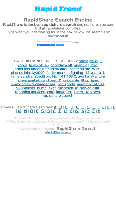 93%rapidtrend is one of the best free rapidshare search engines, you can find any rapidshare file.
