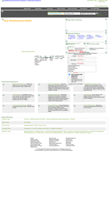 100%find full and part time jobs. employment guide.com provides job search resources including job fairs, online degree programs, career advice, and work at home jobs.