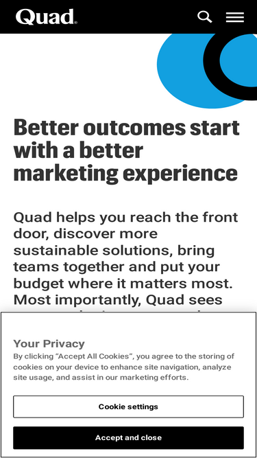 75%Discover Quad's MX Solutions: Data driven intelligence, scalable creative and omnichannel media for efficient marketing and sustainable growth.