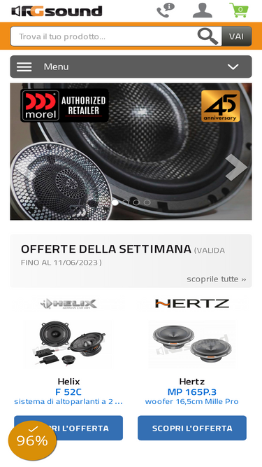 82%Audison AV 6.5P II Coppia di woofer 165 mm serie Voce II con una potenza massima di 300 W, impedenza 4 Ohm Il woofer Audison VOCE II AV 6,5 P II è stato progettato per offrire un suono di eccezionale chiarezza e precisione. Il woofer si disattiva naturalmente nelle posizioni fuor