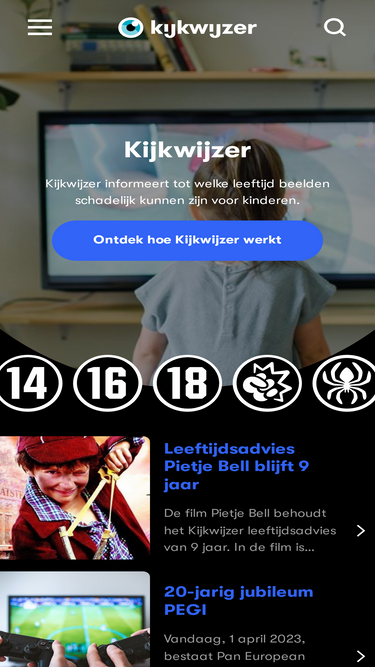 100%kijkwijzer informeert ouders en opvoeders tot welke leeftijd een tv-programma, serie of film schadelijk kan zijn voor kinderen.