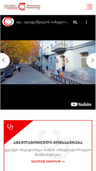 95%განახლებული „ალექსანდრე ალადაშვილის სახელობის კლინიკა“ არის მრავალპროფილური სამედიცინო დაწესებულება, რომელიც ქალაქის ისტორიულ-კულტურული ძეგლების ნუსხაშია შეტანილი.